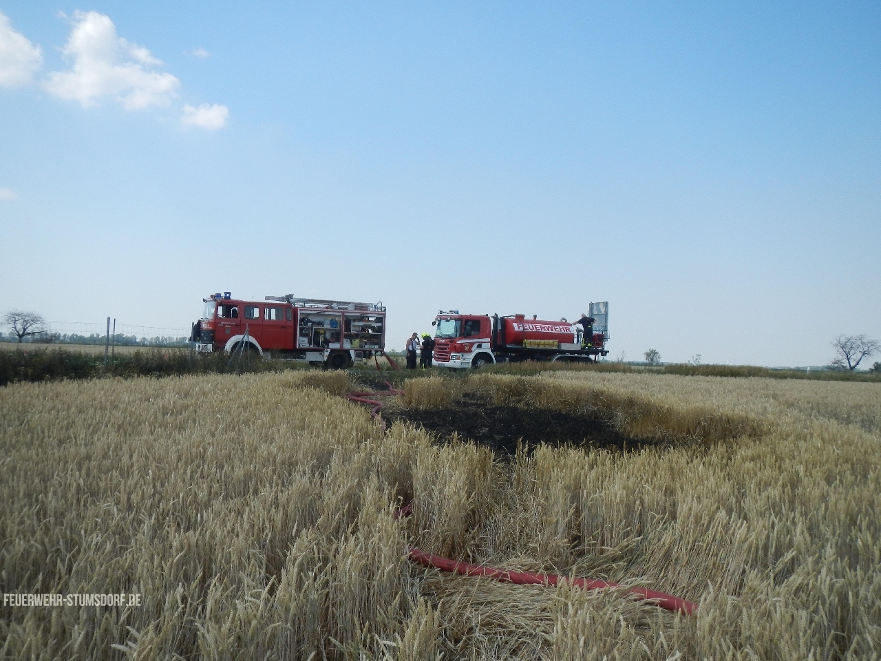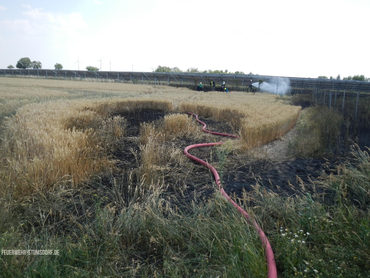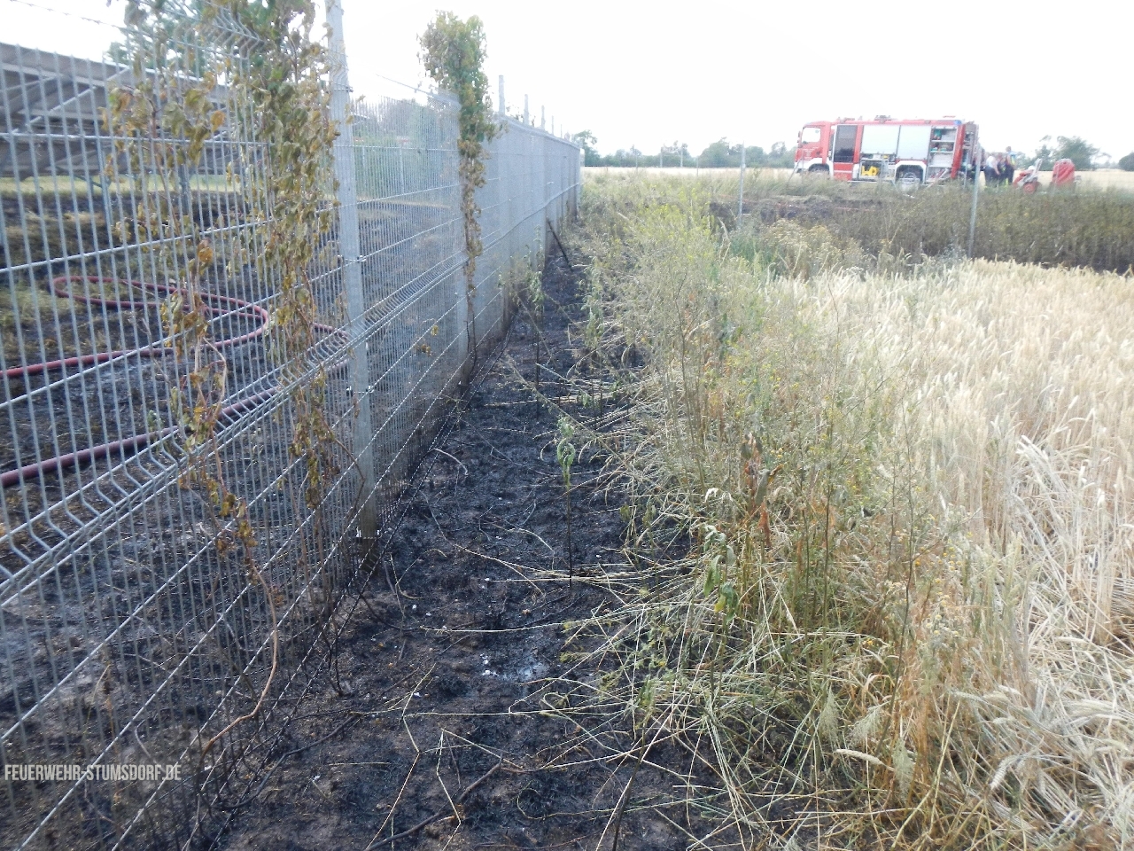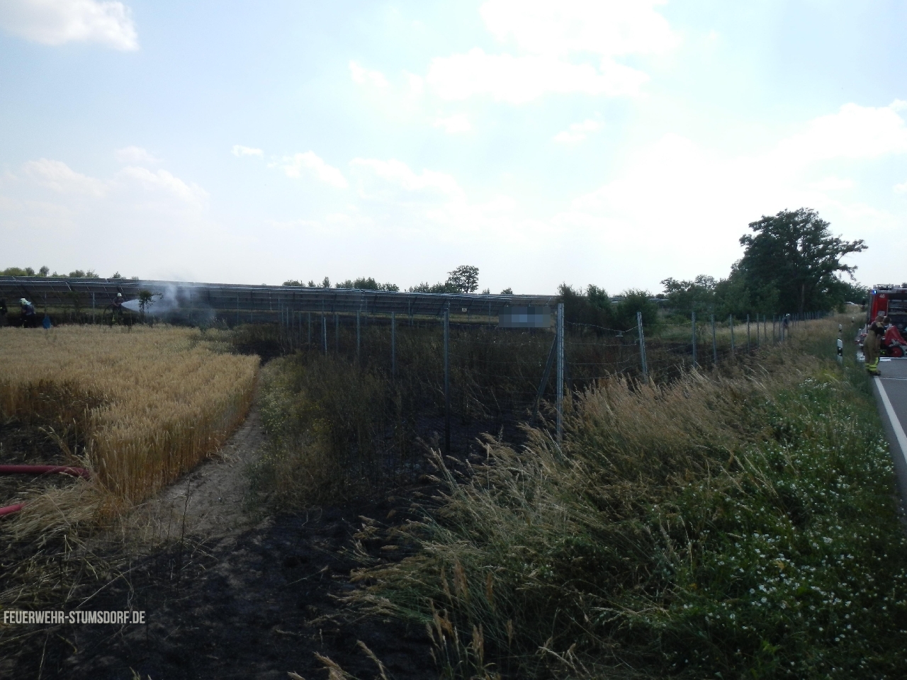 Durch das schnelle Eintreffen, konnte eine Brandausbreitung im Feld weitestgehend verhindert werden. Die L141 war für die Dauer der Löscharbeiten voll gesperrt. Es brannte auf einer Fläche von ca. 2.500 qm.