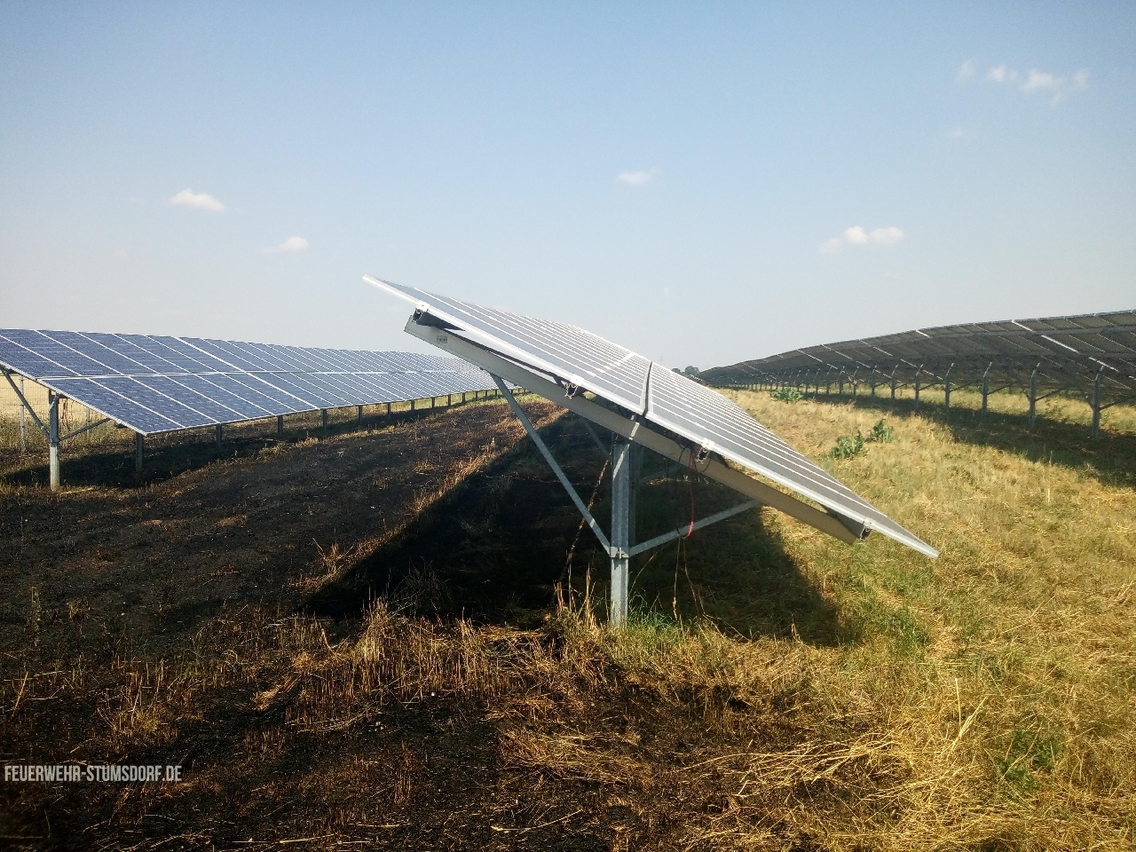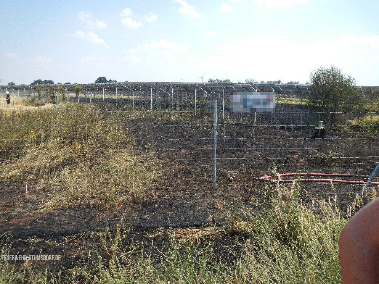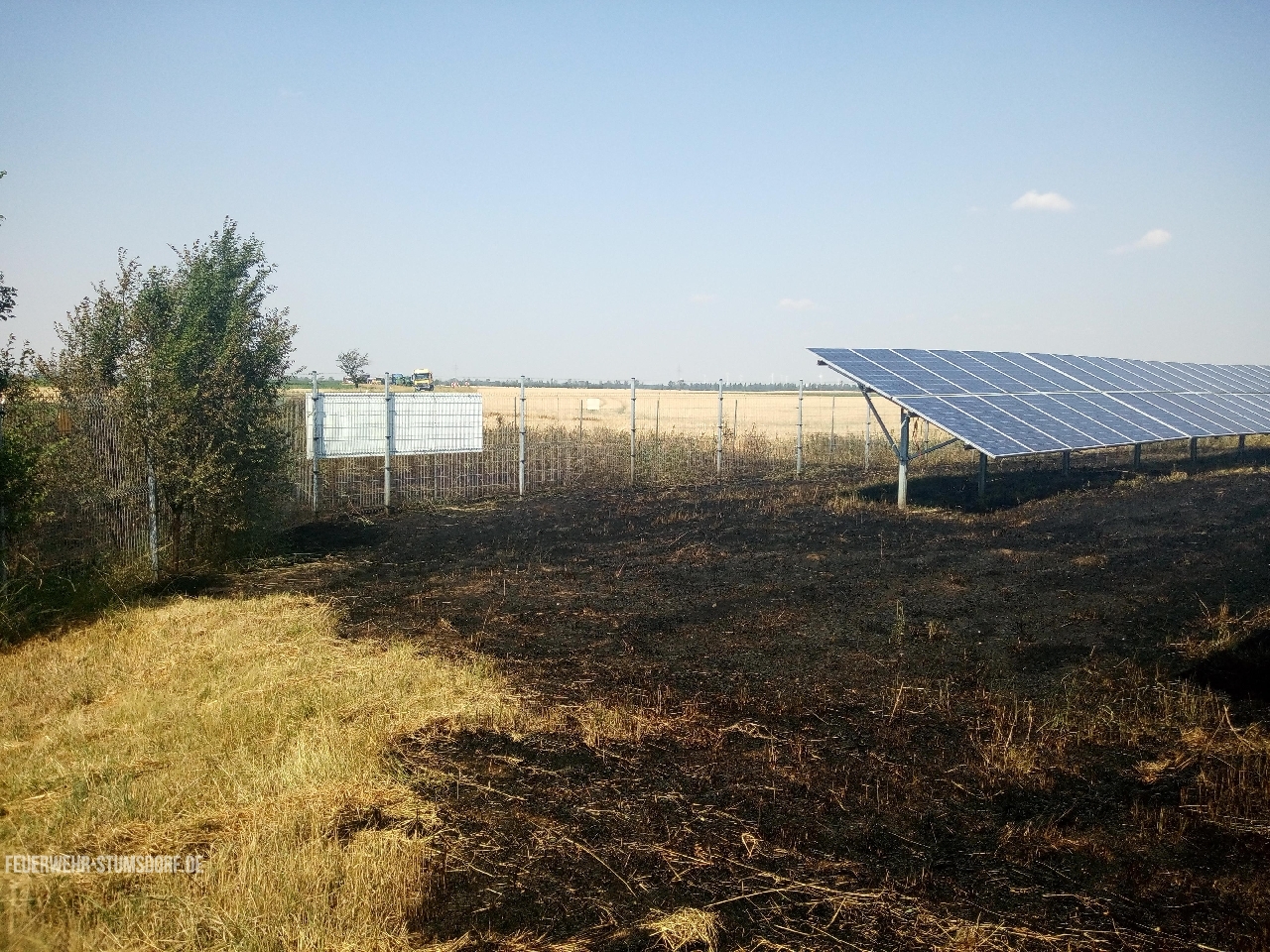 Ein Trupp ging mit dem ersten Rohr zur Brandbekämpfung in das Feld vor, um die Ausbreitung zu verhindern. Ein weiterer Trupp bekämpfte den Ödlandbrand. Nachdem das Feuer im Feld eingedämmt war, ging der Trupp weiter zur Brandbekämpfung in die Photovoltaikanlage und wurde durch die nachalarmierten Kräfte unterstützt.