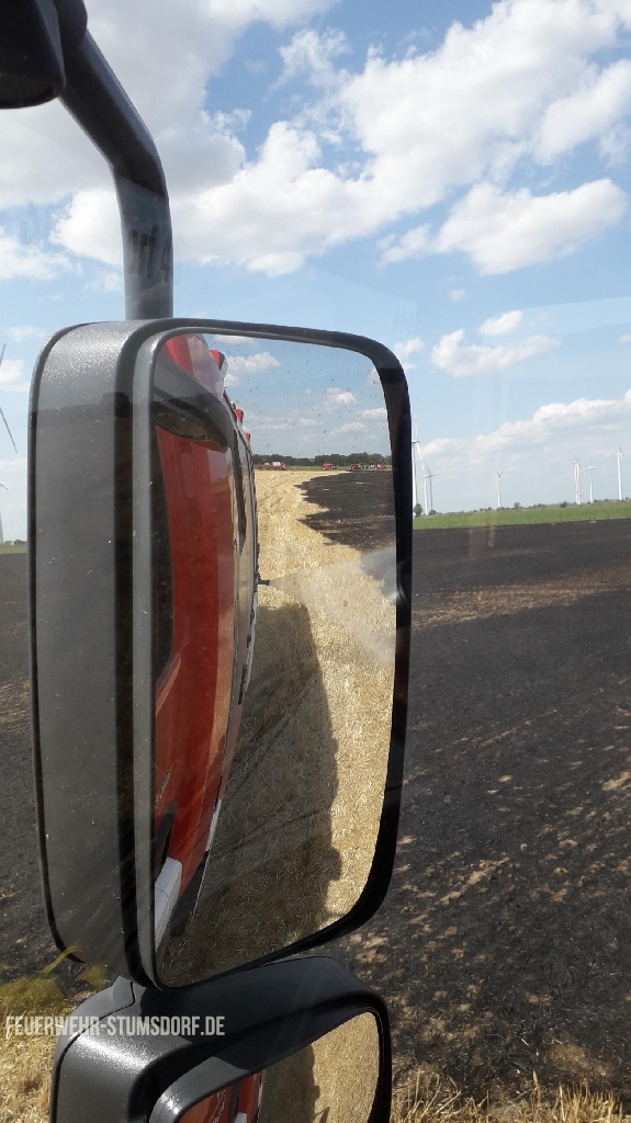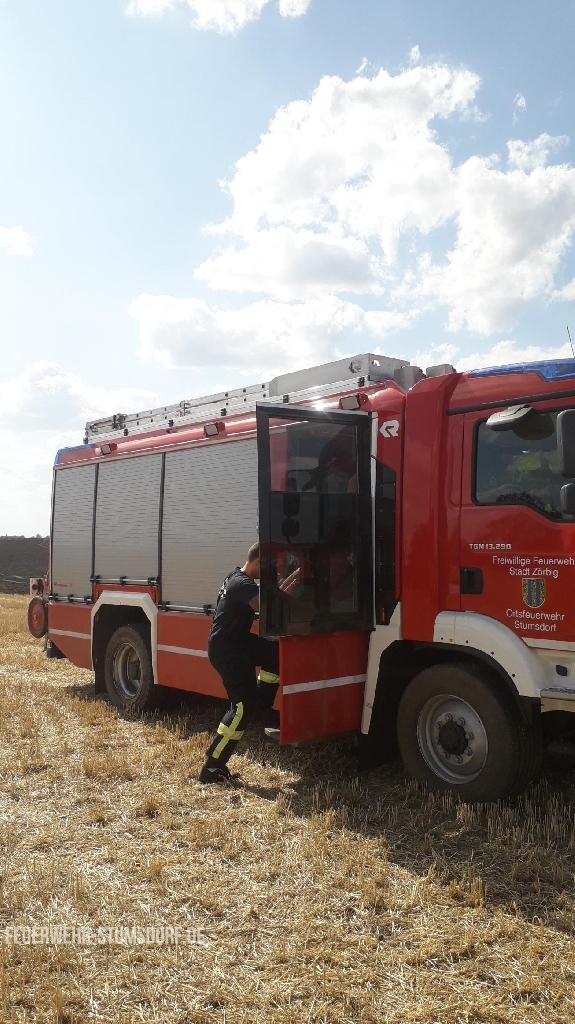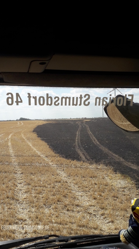 Alarmierung durch die Leitstelle zu einem brennenden abgeernteten Feld zwischen Priesdorf und Weißandt-Gölzau.