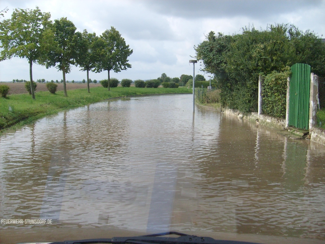 Vor Ort angekommen, wurde festgestellt, dass die Fernwasserleitung am Ortsrand Löbersdorf Richtung Mößlitz einen Defekt hatte und das daraus austretende Wasser gemischt mit Erde vom Acker die Ortslage Löbersdorf teilweise überschwemmte.