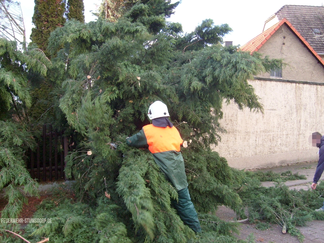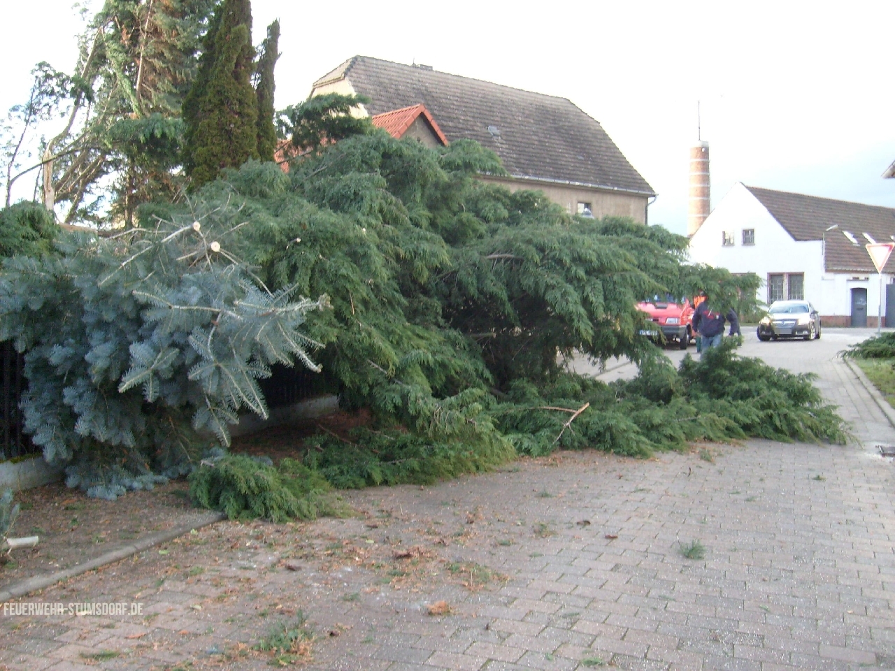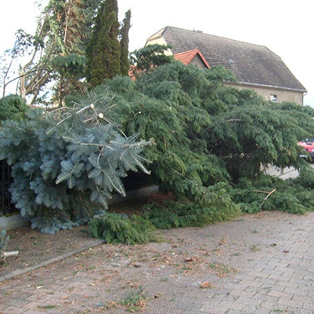 Es war ein Baum von einem Privatgrundstück auf die Straße gefallen. Ein weiterer Baum fiel von einem Privatgrundstück auf die Zuwegung der Kindertagesstätte Stumsdorf. Gleich mehrere Bäume stürzten von einem Privatgrundstück auf eine dort gelegene Garage.